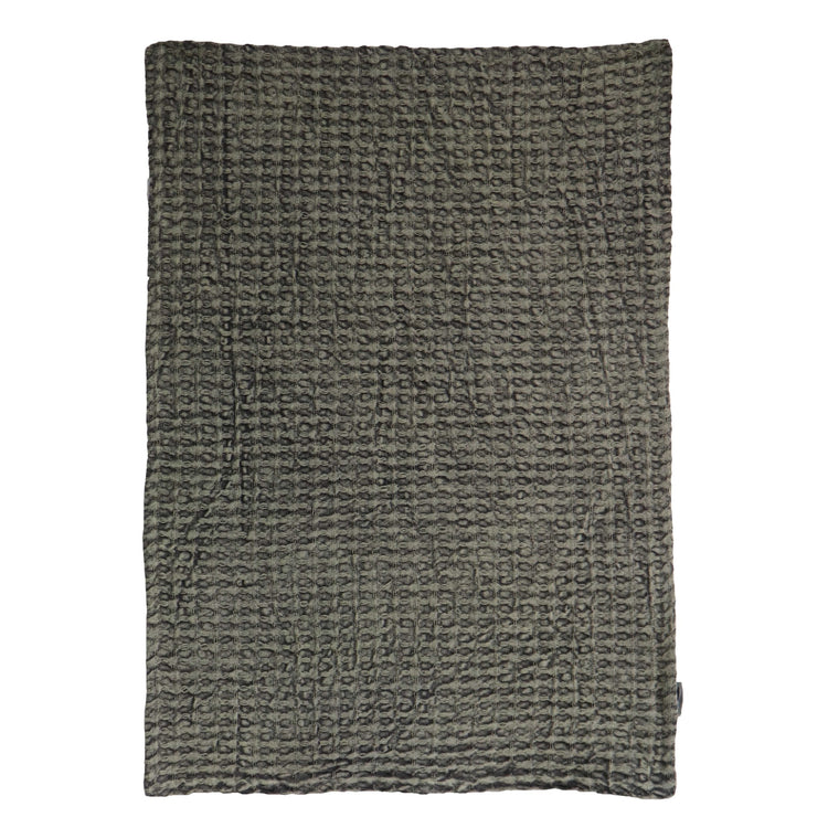 Katoenen geweven stonewashed theedoek wafel 50x70 cm lichtgrijs met lus om op te hangen.