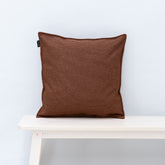 Kussen Asti cognac in 50x50 cm, uitgevoerd in een gladde stof met subtiele, voelbare textuur. Dit sierkussen geeft een rustige basis, en is goed te combineren met andere kussens.