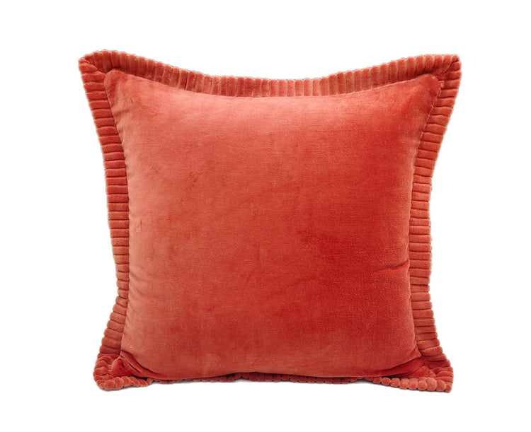 Kussen Palena perzik, een zacht fluwelen kussen met mooie sierrand.