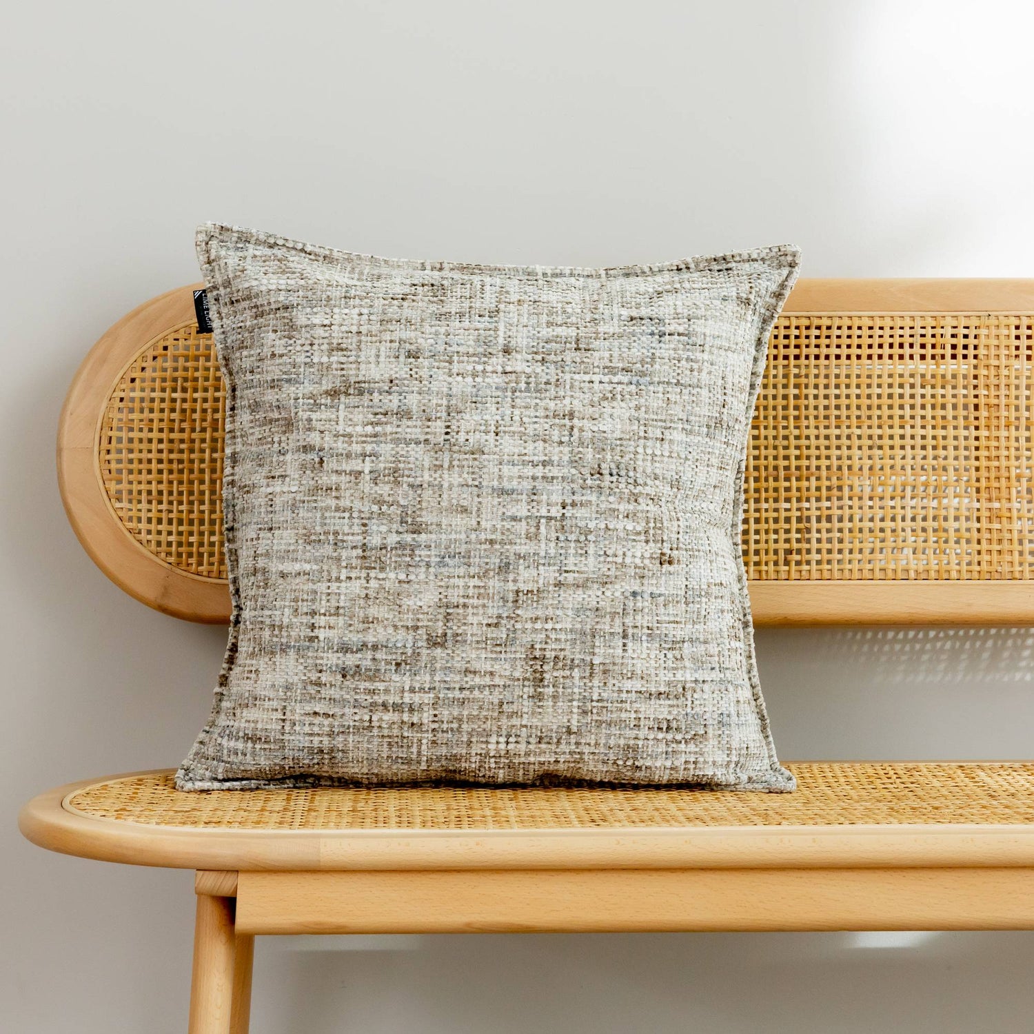 Kussen Saar Taupe is een prachtig zacht kussen in gemeleerde kleuren. Mooi in combinatie met de kleinere variant.