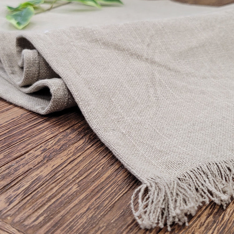 Tafelloper Alva is een mooie geweven tafelloper met een natuurlijke linnen look uitstraling. De fringes geven deze loper een extra touch.