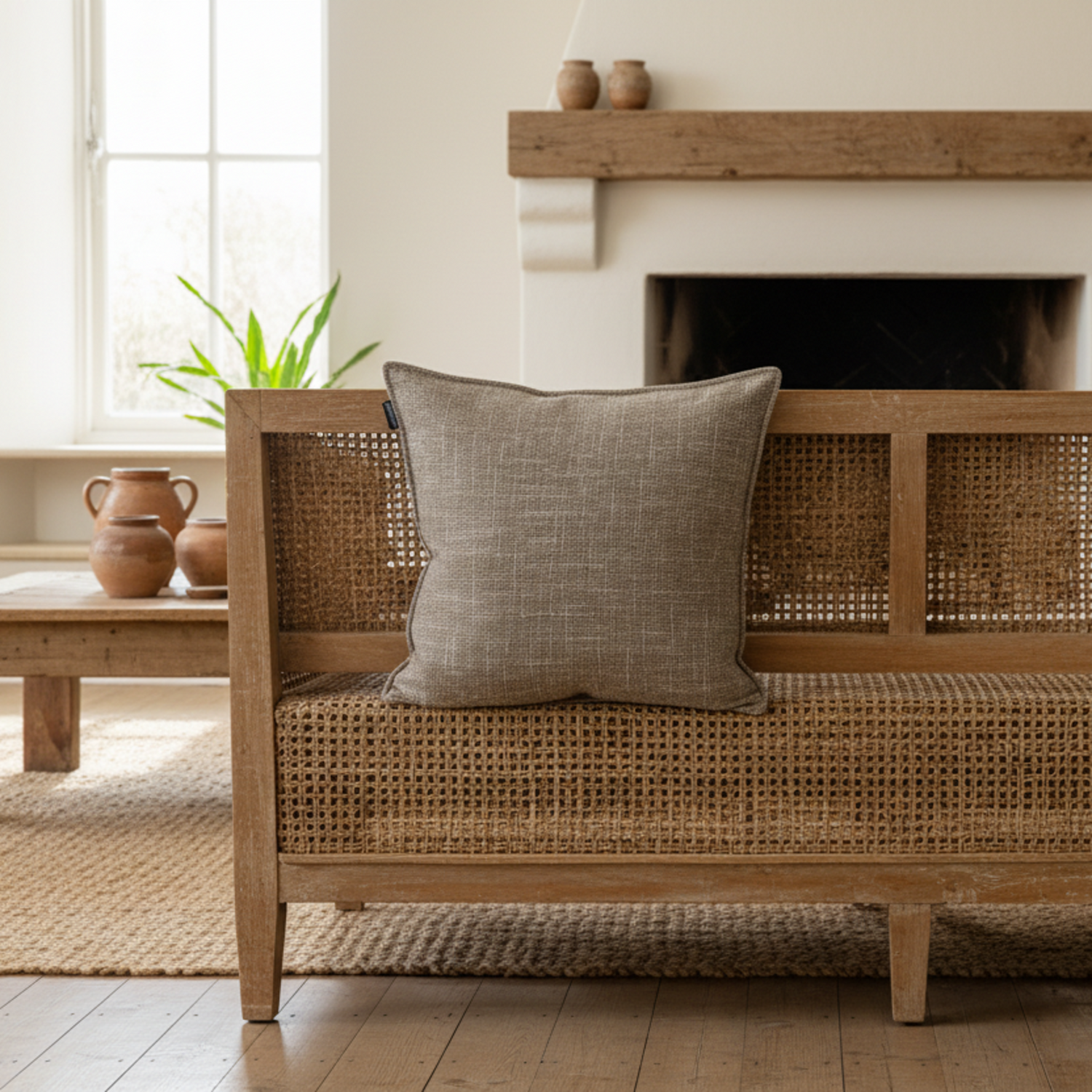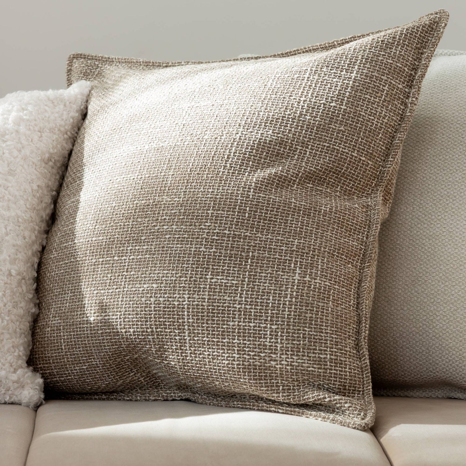 Kussen Laris taupe heeft een natuurlijke, rustieke uitstraling. De mooie textuur geeft het interieur een warme, stijlvolle uitstraling.